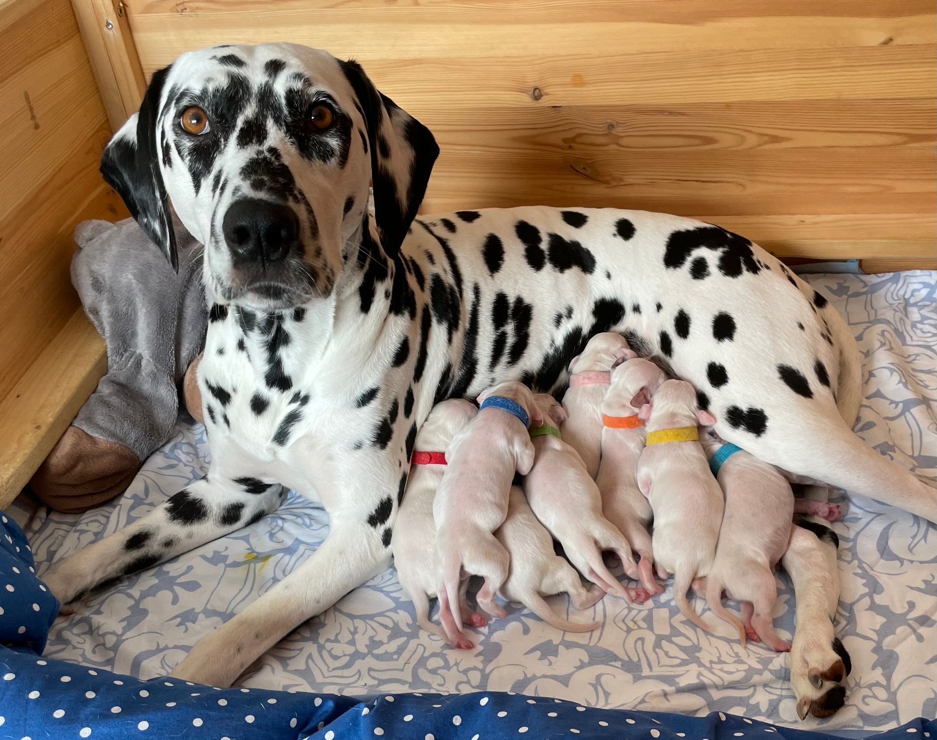 Am 23.08.2023 hat unsere Anni 8 Welpen problemlos zur Welt gebracht.